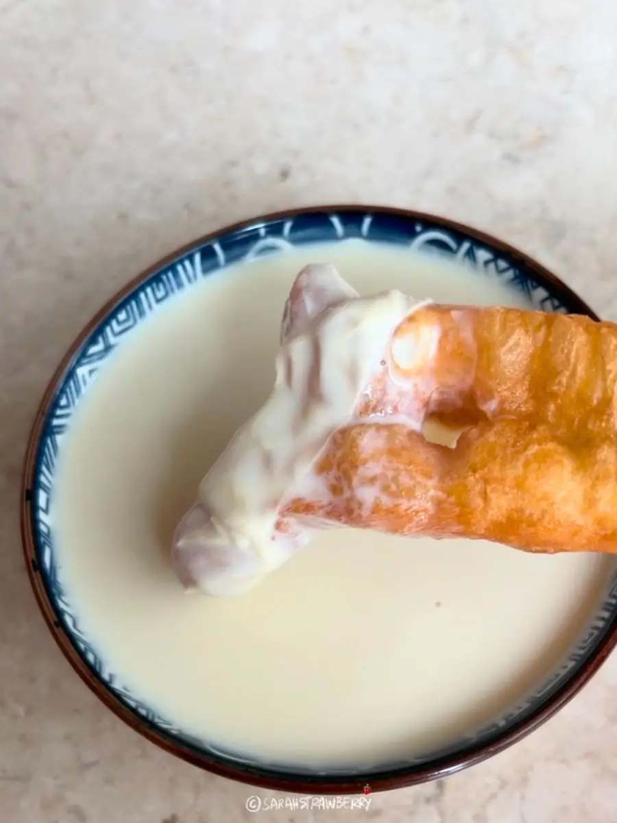 The Savory Way: Keep soymilk unsweetened and dip a freshly fried youtiao (Chinese donut) into it! The combination between crispy fried dough and warm soymilk is unbeatable! This is a commonly found breakfast in China.